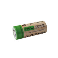 Der 26650 Lithium-Ionen-Akku von Professor Optiken hat eine Spannung von 3,7 Volt und eine Kapazität von 5.000 mAh. Bei unseren Akkus handelt es sich um zuverlässige Premium-Akkus mit hoher Leistungskapazität, schnellen Ladezeiten und langer Lebensdauer. Der Durchmesser des Akkus beträgt 26,4 mm und die Länge etwa 69,8 mm. Zum Schutz vor Tiefenentladung, Kurzschluss und Überladung ist der Akku mit PCB-Schutzelektronik ausgestattet. Er ist ideal geeignete für die Verwendung in leistungsstarken Taschenlampen und E-Zigaretten, Vapes und E-Dampfern. Bitte beachte, dass nicht alle Ladegeräte zum Laden von diesem Akku geeignet sind, wir empfehlen daher die Verwendung unser angebotenen Ladegeräte.